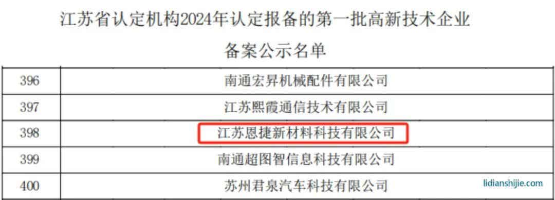 近日,恩捷股份旗下江苏恩捷获“高新技术企业”认定。