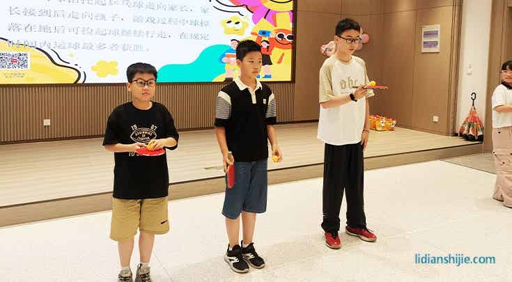 在安全知识抢答环节,小朋友们反应迅速,从容应答,现场氛围积极热烈,在浓厚的学习气氛中,将安全知识熟记于心,工作人员为小朋友盖上印章。紧接着,乒乓球接力趣味游戏开始,按小朋友年龄段分组比拼,小朋友们在起点蓄势待发,大家为参赛队伍欢呼加油!幼儿园的小朋友们拿着大大的球拍运着灵活的乒乓球前进,家长在对面为其鼓励加油!大朋友的比赛也很精彩,有给家长增加难度颠球前进的,有让球反应不过来以速度取胜的。很快决出了五组获胜队伍。