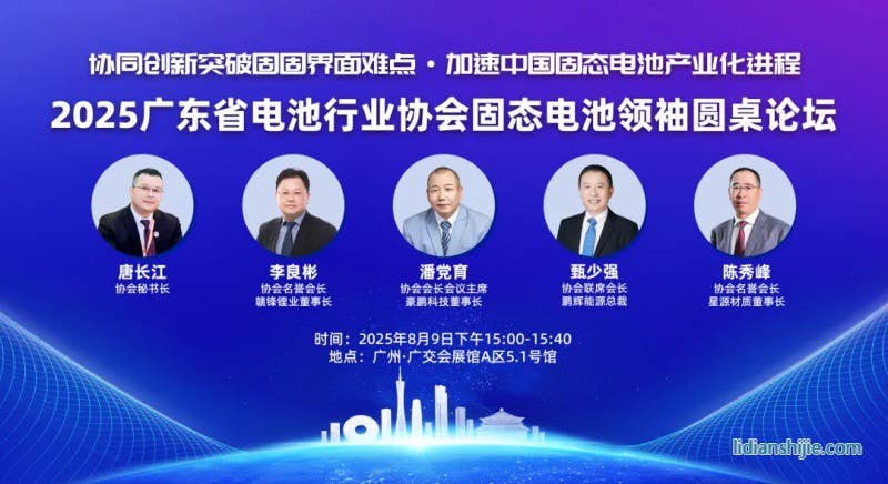 8月9日,以“协同创新突破固固界面难题·加速中国固态电池产业化进程”为主题的2025广东省电池行业协会固态电池领袖圆桌论坛在广州·广交会展馆A区4.1号馆胜利召开!