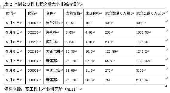 根据沪深交易所规定,上市公司董事、监事、高级管理人员以及持股5%以上的大股东,在定期报告发布前30日内都不能买卖自家公司股票。这段禁买禁卖期就被俗称为“窗口期”。而4月底是所有A股上市公司公布2012年年报和2013年一季报的限期。而当4月30日所有上市公司的增减持“窗口期”大限一过,减持潮就喷涌而出。五月份到今天为止,产业资本净减持高达40.34亿。照这个趋势发展下去,五月份净减持将创历史新高,不是今年新高,也不是近一年新高,而是历史新高(历史净减持最高值10年11月达133亿),而这绝大部分都是集中在中小板和创业板上,可见产业资本对于近期持续上涨的创业板和中小板也是不认同的,纷纷逢高兑现利润。这其中,锂电概念股也出现了集中减持的迹象(表2)。