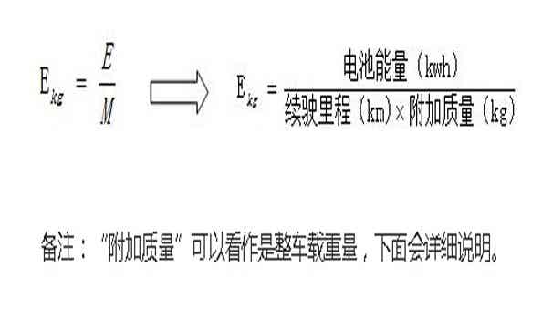 为了具体说明这个公式,我们以比亚迪K9为例,K9车身长12m,动力电池电量324kwh,续驶里程240km,电池能量与续驶里程比E=1350;K9最大质量18000kg,整备质量138000kg,最大装载质量为4000kg,M=4000/2=2000kg(最大允许装载质量大于或等于360kg,附加质量=1/2最大允许装载质量),因此通过计算比亚迪K9的Ekg=1350/2000=0.675。