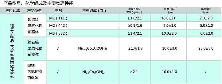 公司利用多年生产氢氧化镍正极材料的制造技术,于2008年开始锂离子电池正极材料用前驱体产品的生产,目前的生产能力已达到8000吨/年,涵盖镍钴锰前驱体和镍钴铝前驱体两大系列。其中,镍钴铝前驱体产品填补了国内空白,为国内第一批量化生产该新产品的企业,主要出口日本松下。