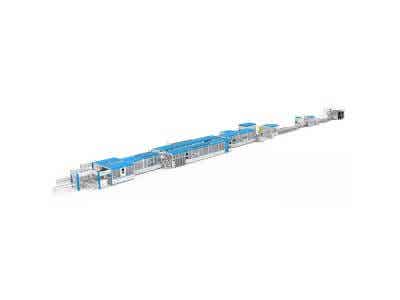该产线是将软包电芯组装为模组的自动化生产线,其工艺流程包括:电芯上料、电芯处理、涂胶烘干、模组堆叠、涂胶入壳、极耳折弯整平、极耳焊接、采集线焊接、外壳焊接、外观尺寸检测、EOL测试等。