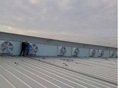 在实际应用中,玻璃钢负压风机一般运用在工厂的厂房通风换气,特别是有酸碱腐蚀性的场所通风换气,安装时集中将玻璃钢负压风机安装在室内墙的一侧窗户上,进气口利用对应在室内的另外一侧窗户或者门,空气由进气口到玻璃钢负压风机形成对流抽风换气。在这个过程中,靠近玻璃钢负压风机附近的门窗保持关闭,强迫空气由进气口一侧门窗补偿流入室内,空气由进气口涌入室内,从室内以一定的风速流过,由玻璃钢负压风机安装的位置排出室外。