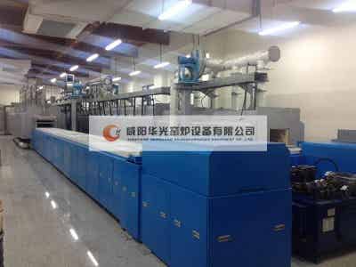 7、温区设置:全炉从前往后共设置19个温区,共30个加热控温点。其中排焦段设置8个温区,顶部中间控温;升温段,恒温段及缓冷段均为上下独立控温,升温段设置6个温区;恒温段设置3个温区;缓冷段设置2个温区。每个温区长度均为800mm。快速降温段设有2个测温点,可通过进排气量调节降温速率。