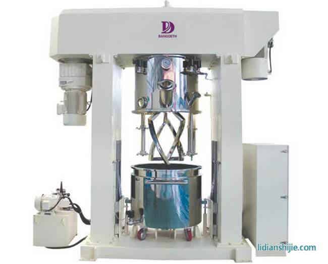 1:行星搅拌机适用于化工、轻工、食品、电池、制药、建材、农药等行业所需的多组分固-固相、固-液相、液-液相物料的混合、反应、分散、溶解、调质等工艺,如有机硅酮密封胶(中性胶)、聚氨脂密封胶、模具胶、电极桨料、油墨,颜料,粘胶剂,密封胶,罐装胶软膏,糊状物料,润滑脂,油漆,膏状化妆品,膏状食品,添加物等多种高粘稠物的制备。适用年度范围100000cp-1000000cp左右。搅拌器的形式,根据物料要求可为多层桨叶式、框式、蝴蝶式、折叶式或双麻花桨搅拌等。