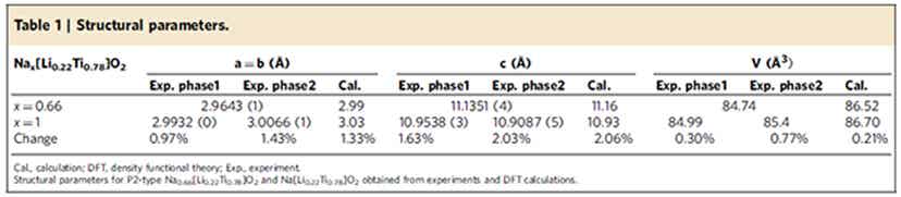表1 P2-Na0.66[Li0.22Ti0.78]O2材料嵌钠前后的体积变化