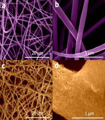 纳米纤维是通过一种静电纺丝的技术制备的,即在旋转鼓和喷嘴之间施加20000至40000伏的电压,由此会发射原硅酸四乙酯(TEOS)组成的溶液,这种溶液是一种经常在半导体工业中使用的化学化合物。然后纳米纤维暴露于镁蒸气,以产生海绵状硅纤维结构。