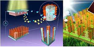 设计制备出由ITO纳米线芯层与Cu2S纳米晶壳层组装而成的ITO@Cu2S纳米线阵列,使用这种具有三维导电网络结构的材料制备的量子点敏化太阳能电池表现出优于传统材料的优异性能(Nano Lett., 2014, 14, 365);通过优选Cu2S纳米晶壳层的构筑方法,深入研究其组装结构中ITO纳米线芯层与Cu2S纳米晶壳层间界面对电池性能的影响,进一步提高了电池的转换效率(ACS Appl. Mater. Interfaces, 2014, 6, 15448);在此基础上,通过网络化多级组装设计,在ITO@Cu2S纳米线阵列结构基础上进行了二级和三级结构的组装,进一步使利用这种对电极材料的量子点敏化太阳能电池的转换效率提升至6%以上。这种新型对电极材料在电池运行时可有效形成隧道结,通过降低器件的串联电阻,提高并联电阻以及填充因子而大大提高了电池的转换效率,而且解决了传统金属铜/硫化亚铜易脱落、无法稳定工作的难题(Nano Lett., 2015, 15, 3088)。