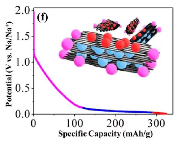 例如TiO2/C复合材料,具有十分优良的倍率性能,在36C的超大倍率下,仍然具有90mAh/g以上。此外,金属硫化物也是一种可供选择的负极材料,例如MoS2材料在钠离子电池中也具有良好的电化学性能。