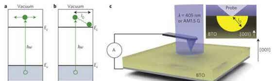 由美国海军研究实验室(US Naval Research Laboratory)、卓克索大学(Drexel University)、宾州大学(University of Pennsylvania),以及俄罗斯科学院(Russian Academy of Sciences)舒布尼可夫晶体研究所(Shubnikov Institute of Crystallography)共同组成的研究团队利用钛酸钡晶体更有效率地将阳光转换为电能,甚至突破了S-Q效率极限(Shockley- Queisser limit)理论预测所能实现的效率——能隙材料在可见光频谱几乎不吸收光。这可能也有助于开发透明的太阳能电池。