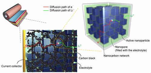 图1. 利用纳米碳三维导电网络构筑高性能锂离子电池电极材料示意图。
