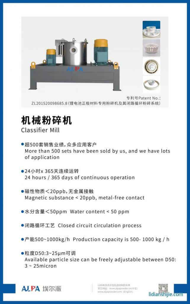 埃尔派经过长期的实践和不断研发,拥有了一套完善的锂电池正负极材料处理方案及设备体系,能够满足复杂工艺要求,包括无尘投料、磁选、超细研磨、分级、粉体输送、计量包装、自动配料、智能控制等粉体流程工艺的集成设计。埃尔派提供的机械粉碎机和气流粉碎机都可以满足企业对于磷酸铁锂超细超大产能的需求,如果您在锂电行业有任何粉碎、分级的需求,欢迎您随时与我们联系。