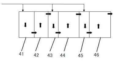 普通BAF技术必须通过单独设置硝化滤池(N池)和反硝化滤池(DN池),本技术可内部设置缺氧池41、43、45和好氧池42、44、46区间,从而实现单池内的硝化与反硝化。