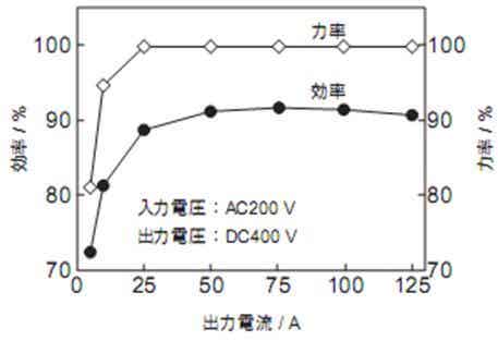 EVC-50KA的效率与功率特性示于图8。效率在额定输入输出时为90.7%,功率在20%负载以上的领域为99%以上均可满足表1列出的规格,并可获得良好的性能。