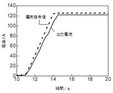 图9是EVC-50KA直流输出电流的随动性能。对图中用虚线表示的电流指令值,充电器的输出电流很快地得到随动。另外,未见超出规定,具有良好的性能。