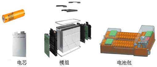 图4 不同类型的电芯、模组和电池包