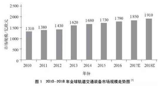 近年来,在国家政策的推动下,我国一线乃至二三线城市迎来了轨道交通建设的热潮。据统计,目前中国已有至少45个城市申报建设城市轨道交通项目,其中39座城市获批,共有20个城市开通并已经运行城市轨道交通。全球轨道交通的产值也从2010年的1 310亿欧元增长到2013年的1 620亿欧元,预计到2018年,将突破1 900亿欧元(图1)。