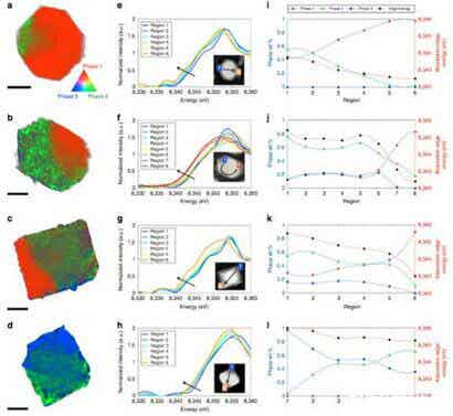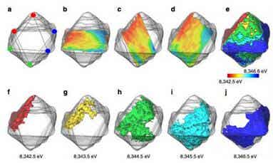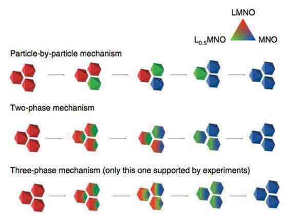“虽然对固体物质动力学反应途径和相变反应的机理研究十分困难,但是这些信息对于设计先进材料十分重要,这不仅仅是针对电池电极材料,也包括应用在其他领域的材料”Guoying Chen表示“我们工作的独特之处是对于单个晶体采用了高解析度的二维和三维成像技术”,之所以选用LiXMn1.5Ni0.5O4进行研究,是因为该材料具有高电压的属性(5V),非常有希望成为下一代高比能电池的正极材料。为了便于研究,Chen等人在实验室制造了大小为几微米的单晶“如此就可以对单一晶体进行分析,而不用担心其他不可控因素的影响,例如晶界和空隙”。