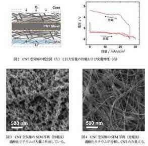 据 NIMS介绍,碳纳米管是“锂空气电池”所使用的空气电极材料,通过电极结构的优化,可以实现30mAh/cm2的能量密度,这一数值是普通锂电池的15倍之多(2mAh/cm2)。