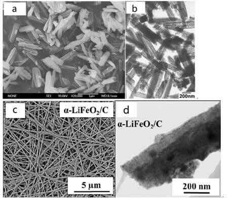 由于LiFeO2在循环过程中容易发生相变形成尖晶石相的LiFe5O8,导致容量衰减较快,因此许多研究小组通过掺入离子半径和价态与Fe接近的Mn、Co和Ni等阳离子来改善其性能。随着研究的深入,近年来也有人通过碳材料包覆、材料纤维化等手段来改善材料性能。