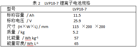 LVP10电池7只串联连接的电池组“LVP10-7”的外观照片及规格分别示于图9及表2。外部电池组的监控装置(BMU)示出电池电压与电池温度,所以每只电池应安装电压检测导线与热敏电阻。另外,为了防止外部设备发生短路时通过短路电流避免外部设备受损,在电池阻内部装有保险丝。