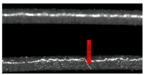 图4是极片分切时存在的掉料和波浪边缺陷,波浪边。出现波浪边时,极片分切和卷绕时会出现边缘纠偏抖动,从而引起工艺精度,另外对电池最终的厚度和形貌也会出现不良影响。