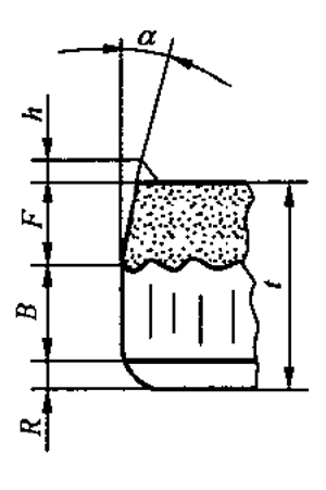 R-塌角高度 B-光亮带高度 F-撕裂带高度 h-毛刺高度 α-断裂角 t-板材厚度
