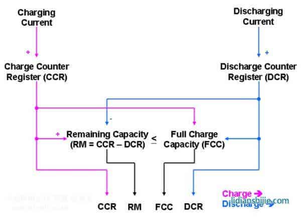 库仑计量法可精确计算出充电或放电过程中实时的荷电状态。藉由充电库仑计数器和放电库仑计数器,它可计算剩余电容量 (RM) 及完全充电容量(FCC)。同时也可用剩余电容量(RM) 及完全充电容量 (FCC) 来计算出荷电状态,即 (SOC = RM / FCC)。此外, 它还可预估剩余时间,如电力耗竭(TTE)和电力充满(TTF)。