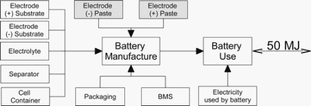 最终航运和生产细胞容器,模块包装,隔板材料,和电解质的贡献不大引起的环境损害,统称低于10%的任何影响类别。