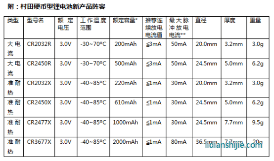 村田新增“大电流型”和“准耐热型”硬币型锂电池
