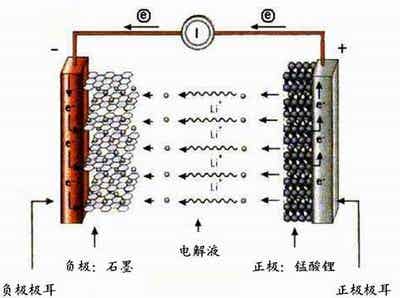 锂离子电池的工作原理是:电池充电时,正极材料中的锂脱出来,穿过隔膜进入到负极石墨中;电池放电时,锂离子又从负极石墨中脱出来,穿过隔膜回到正极材料中。随充放电的进行锂离子不断的从正极和负极中嵌入和脱出。