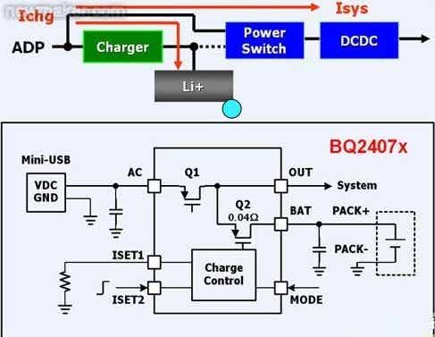 有必要介绍一下目前主要的手机电池充电方式。在过去,采用锂电池的手机、GPS等便携式终端大都采用充电IC加DC/DC或者PMU的拓扑实现功率转换为整个系统供电。这种方式的好处是结构简单,成本也相对较低。然而其缺点也不容忽视:由于其判断电池是否充满的依据是充电电流的大小,但实际上系统本身在充电的同时也在消耗电池中的电流,因此系统根本无法精确估算电池是否已经充满。为了解决这一问题,人们开始引入软件控制的方法对电池进行持续充电。不过这种方案又带来了电池长时间持续过饱和的弊端,从而导致电池寿命降低、严重时还会发生爆炸的情况。因此在智能手机市场中,原本属于笔记本电脑的开关模式电池充电技术也开始大行其道。