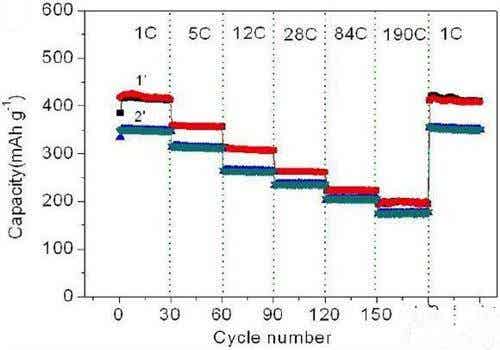 以单晶氧化钒与带状石墨烯作为锂电池正极活性材料能够在20秒内实现完整的充电或放电过程。在以190C超高放电率状态下循环1000次,电池仍能保持初始容量的90%,实验数据显示这是迄今为止循环性能最佳的正极材料。
